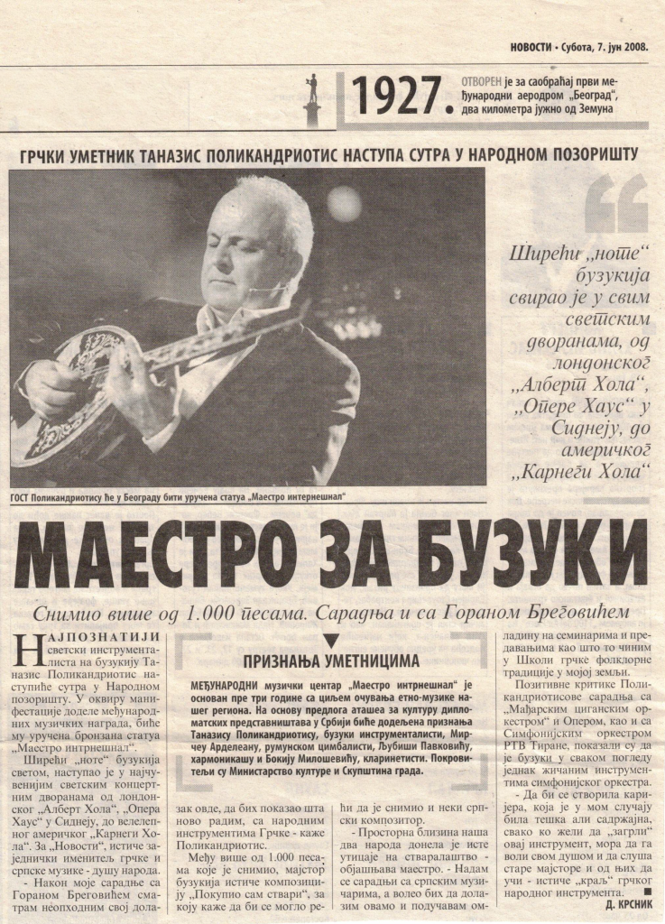 Medijski izveštaji sa dodele internacionalne muzičke nagrade